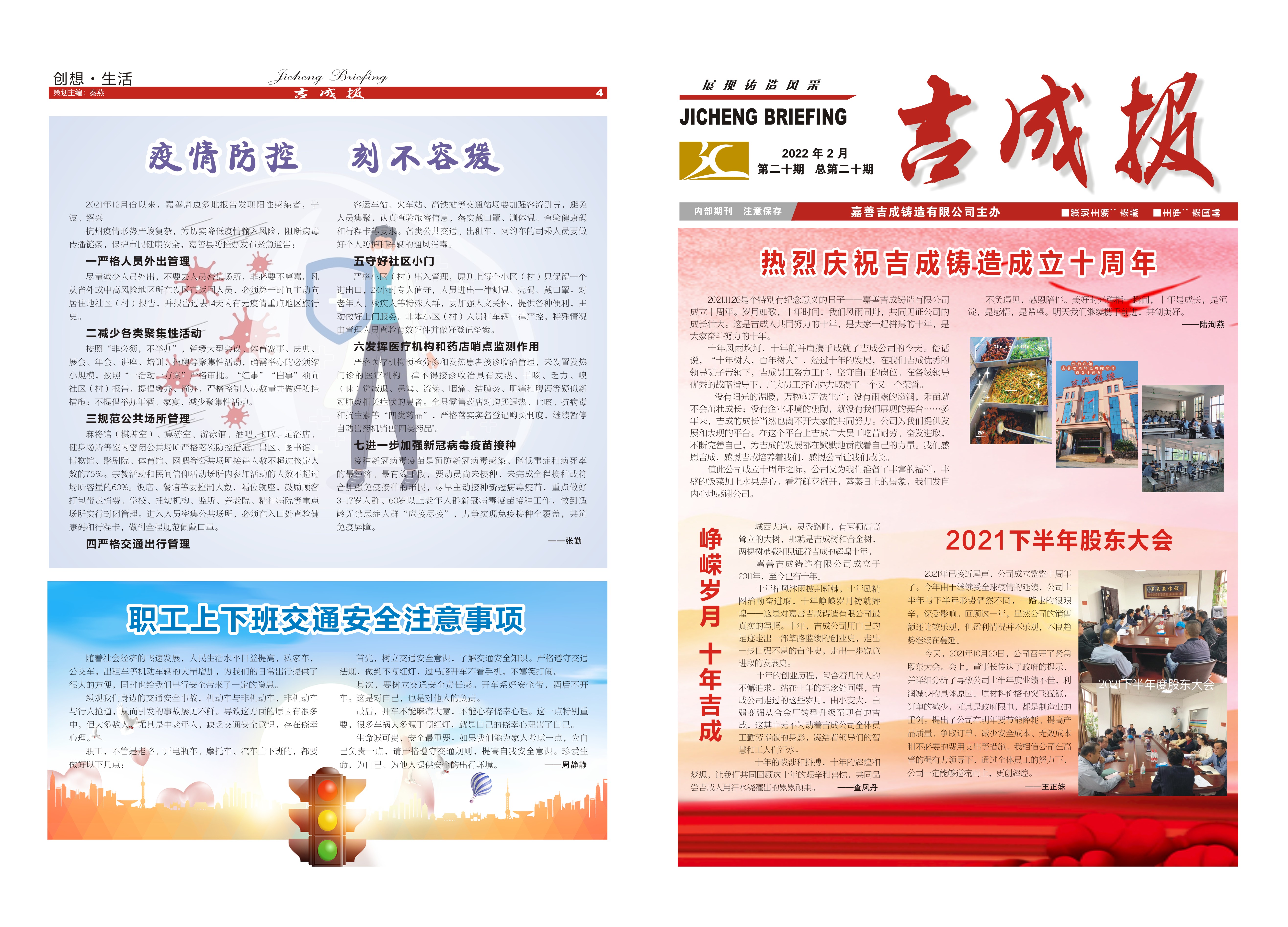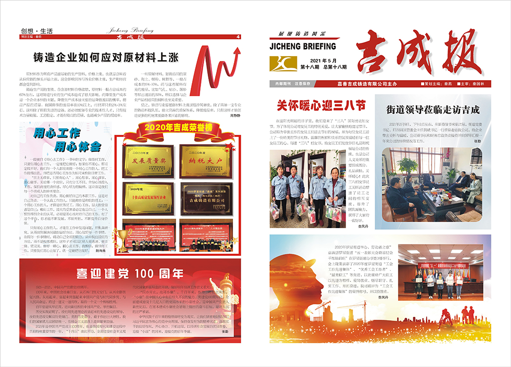 嘉善吉成鑄造有限公司位于杭嘉湖三角洲,占地面積17000平方米,建筑面積19000平方米。主要從事:球墨鑄件、灰鐵鑄件的生產和銷售。